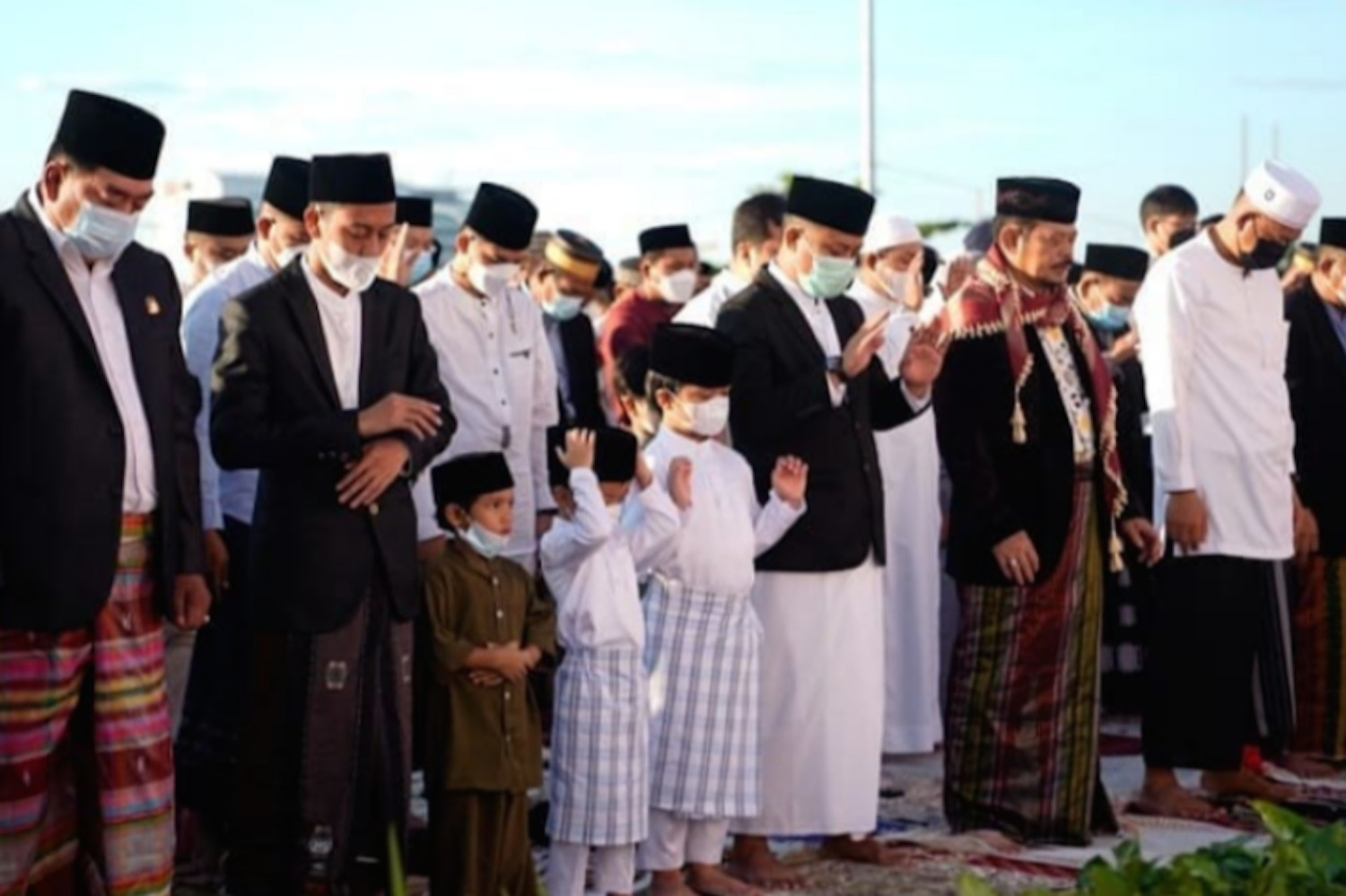 MANIFESTO, MAKASSAR — Gubernur Sulawesi Selatan Andi Sudirman Sulaiman salat id di Masjid 99 Kubah, sedangkan Wali Kota Makassar Danny Pomanto salat di Lapangan Karebosi, Makassar, Sabtu (22/4/2023).