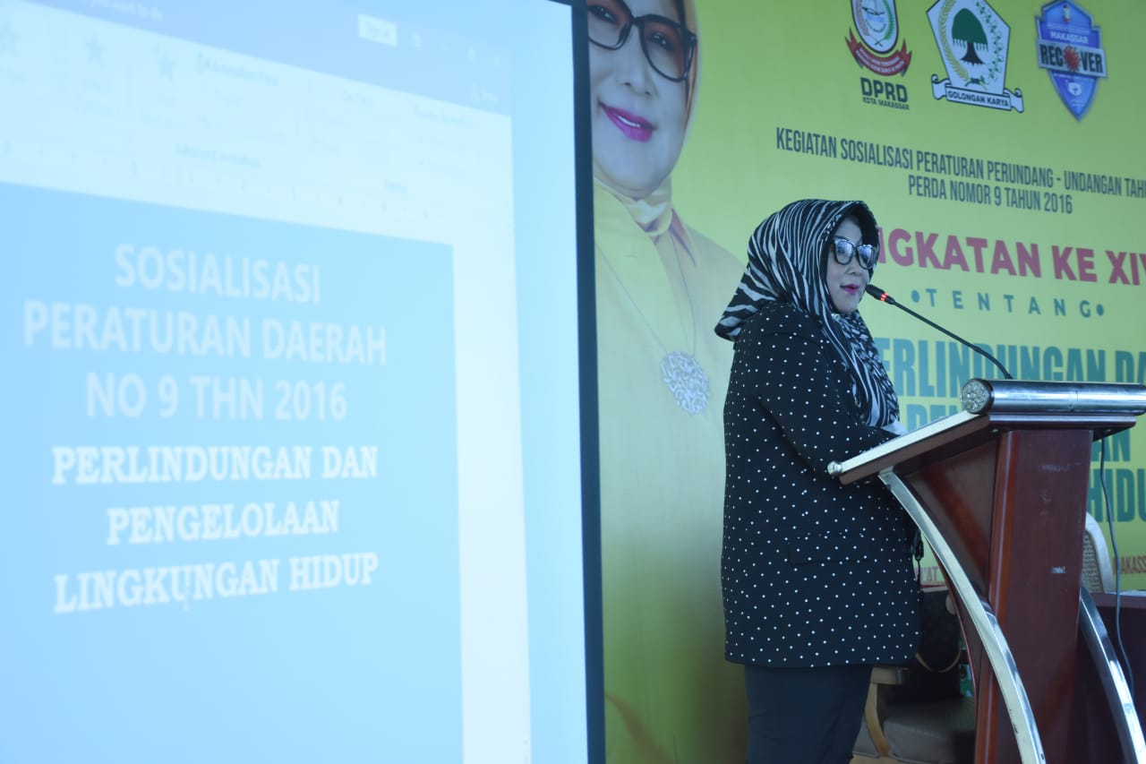 MANIFESTO, MAKASSAR – Anggota DPRD Kota Makassar, Apiaty K Amin Syam menggelar sosialisasi peraturan daerah (Perda) nomor 9 tahun 2016 tentang Perlindungan dan Pengelolaan Lingkungan Hidup di Hotel Aston, Jumat (19/11).