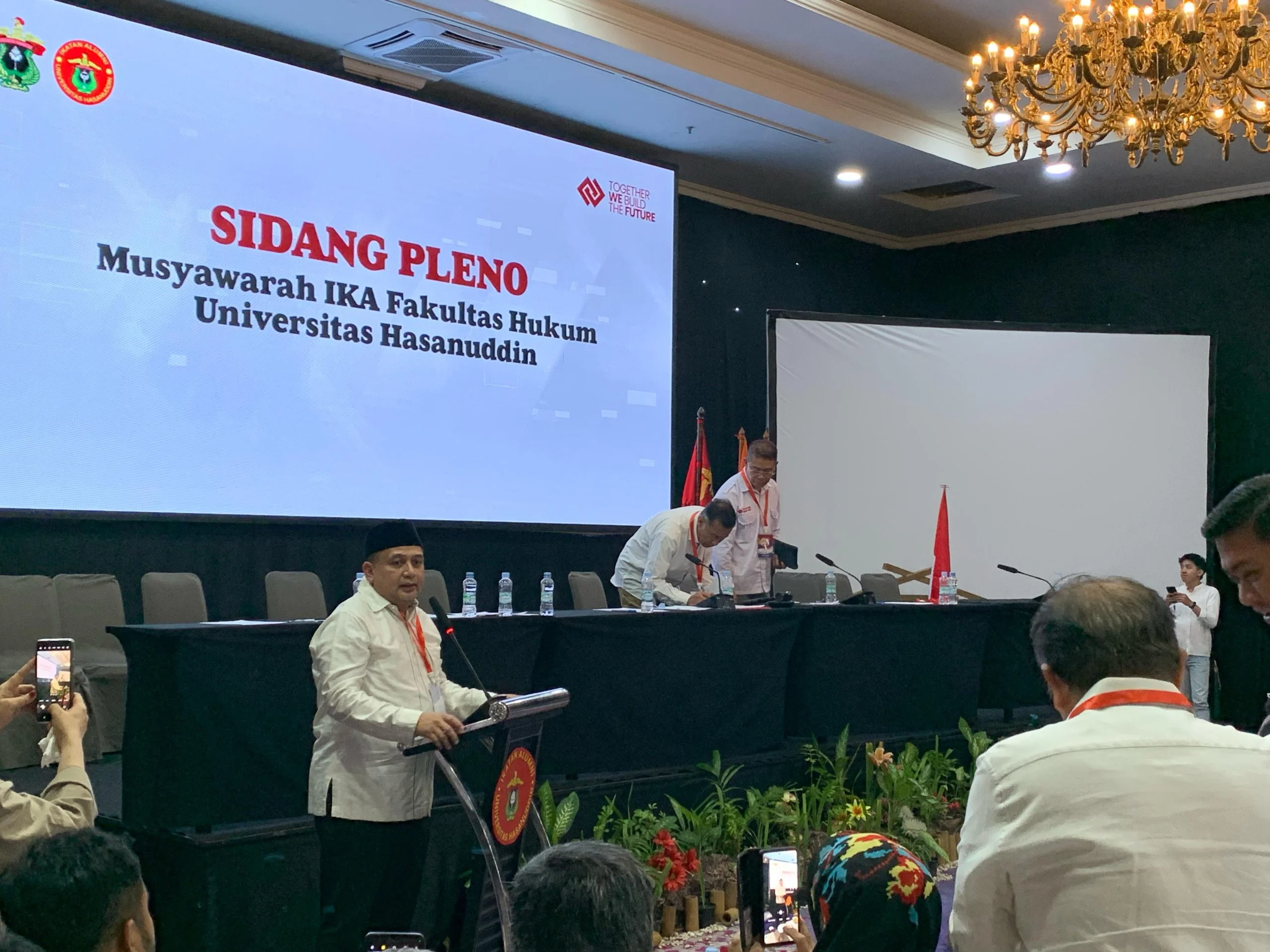 Pemilihan Ketua IKA Fakultas Hukum Unhas dirangkaikan saat halal bi Halal IKA Fakultas Hukum Unhas, di Hotel Aryaduta Makassar, Minggu (6/4/2025). Appi menggantikan Syahrul Yasin Limpo.