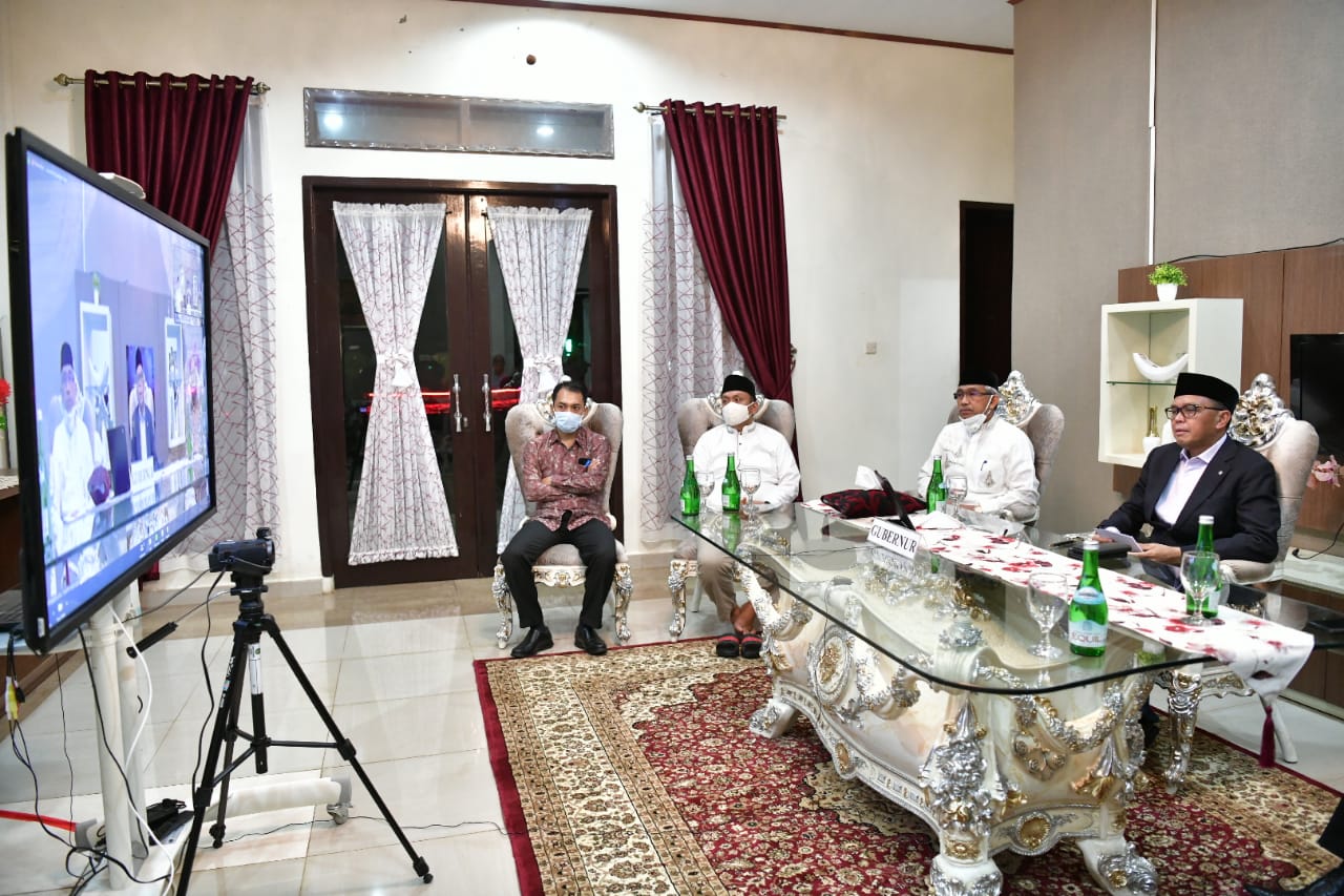 MANIFESTO, MAKASSAR – Gubernur Sulawesi Selatan, Nurdin Abdullah bersama seluruh unsur Forkopimda Sulsel serta seluruh Organisasi Perangkat Daerah (OPD) Pemerintah Provinsi Sulsel mengikuti peringatan malam Nuzulul Qur’an melalui Video Conference. Sabtu, 9 Mei 2020.