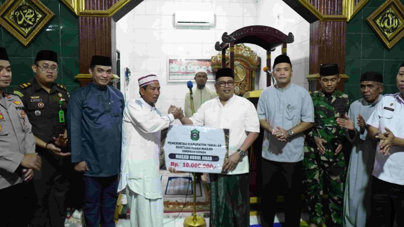 Dalam kesempatan tersebut, Bupati Takalar menyerahkan bantuan dana hibah sebesar Rp20.000.000 untuk pembangunan Masjid Nurul Jihad. Selain itu, ia juga menyerahkan Al-Qur’an serta bantuan bibit jagung dan bibit padi kepada kelompok tani di Kecamatan Polongbangkeng Utara.