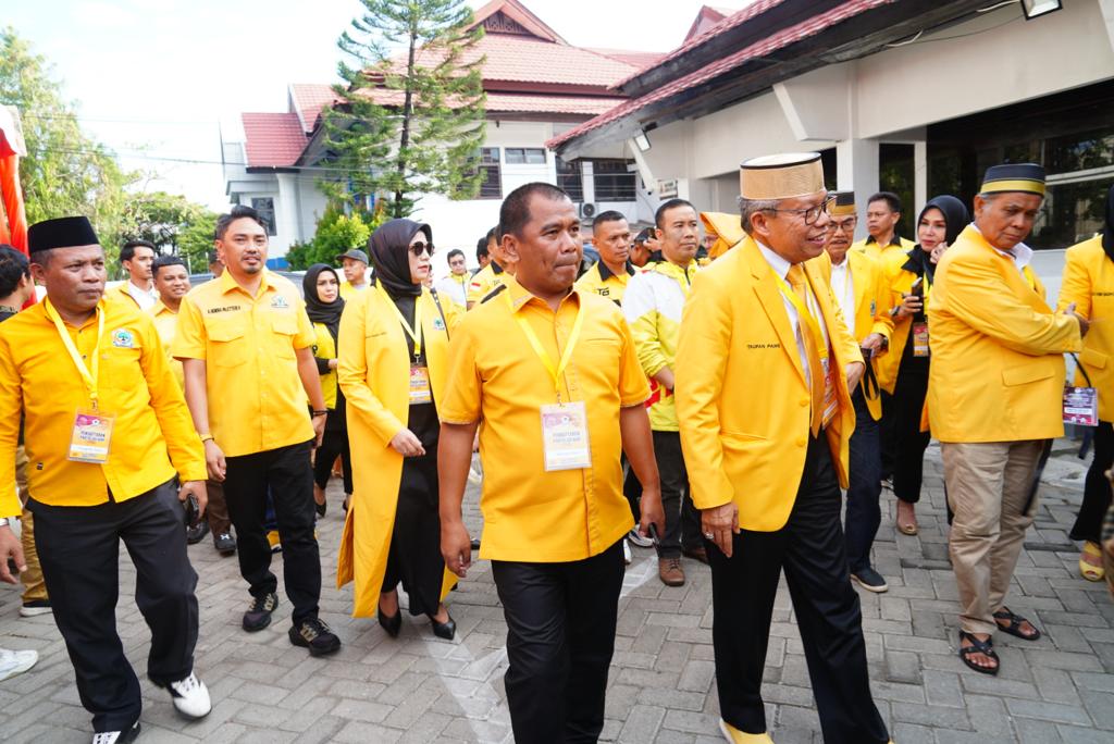 Taufan Pawe ditemani caleg DPRD Sulsel dan ratusan simpatisan Partai Golkar.TP mengatakan, hari ini Partai Golkar memperlihatkan komitmen dengan taat pada prosedur sebagai mana diatur PKPU nomor 10 2023.