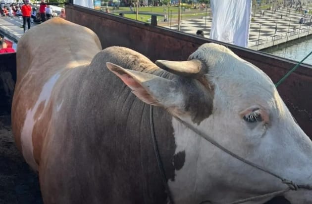 Sumbangan itu berupa seekor sapi dengan berat 1,4 ton, yang diserahkan pada acara Sulsel Anti Mager, 10 ribu langkah di CPI, Makassar, Minggu (26/6/2022).