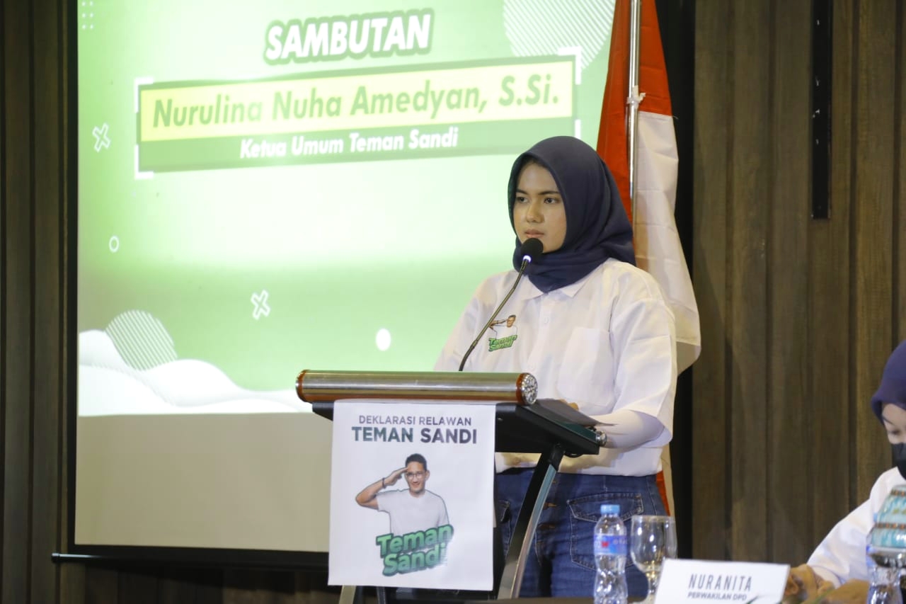 Ketua Umum (Ketum) Teman Sandi, Nurulina Nuha Amedyan mengatakan, deklarasi ini bertujuan membangun Indonesia yang produktif, kreatif dan inspiratif. Adapun deklarasi ini serentak digelar di 17 kota lainnya di Indonesia.