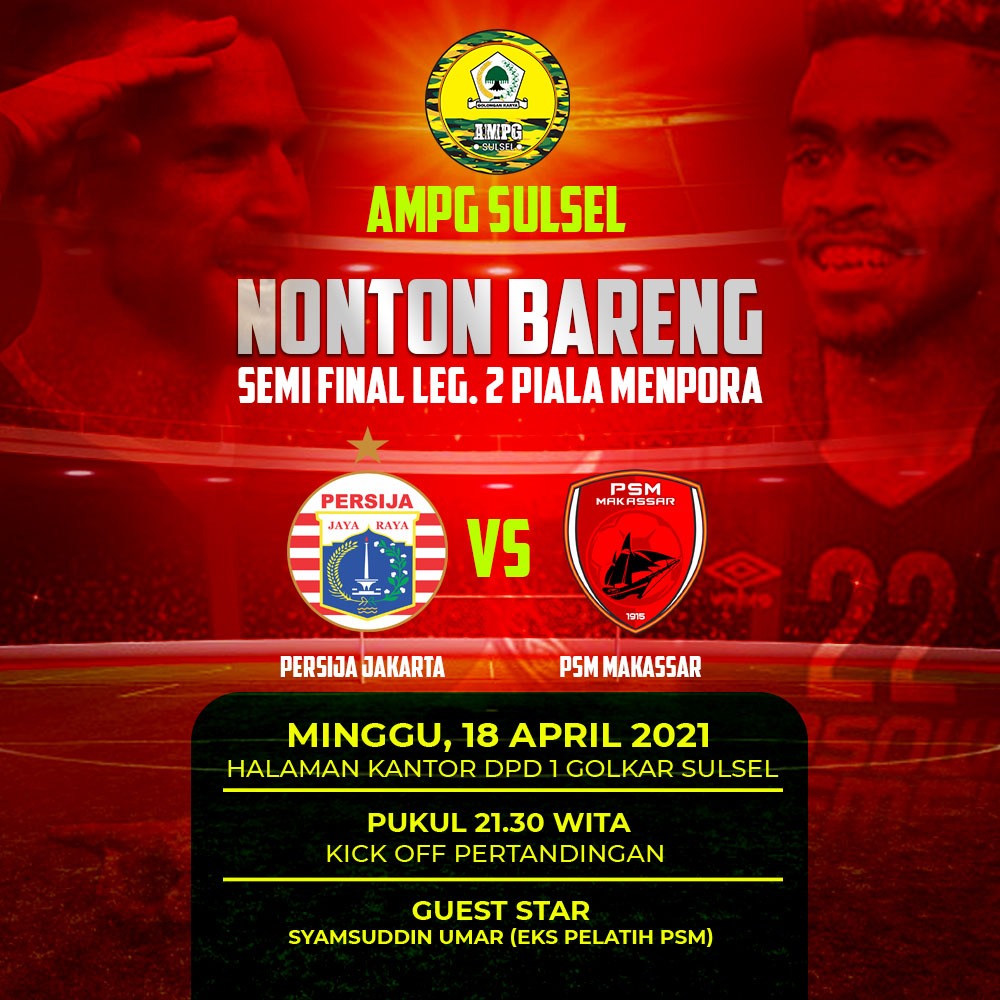 “Kita gelar nobar besok untuk mendukung PSM mengalahkan Persija, rencana ratusan kader AMPG akan hadir nobar, ini dukungan kami menuju PSM juara,” kata juru bicara AMPG Sulsel Denny Abiyoga, Sabtu 17 April 2021.