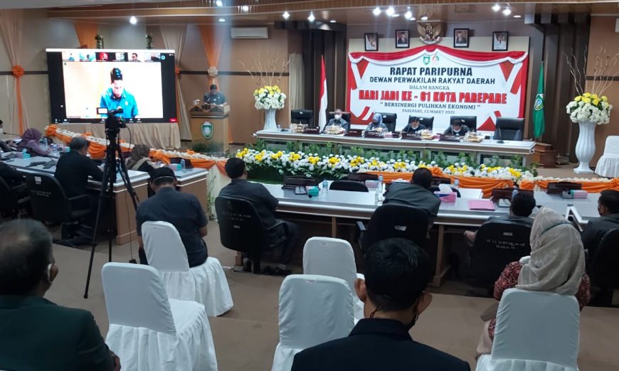 Rapat paripurna dipimpin Ketua DPRD Parepare, Hj Andi Nurhatina Tipu didampingi Wakil Ketua I H Tasming Hamid dan Wakil Ketua II M Rahmat Sjamsu Alam. Hadir para anggota DPRD Parepare.