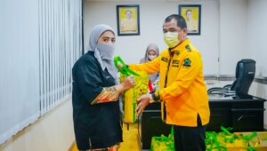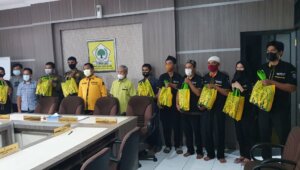 MANIFESTO, MAKASSAR– Fraksi Golkar Sulsel berbagi bingkisan paket lebaran kepada puluhan cleaning service dan satpol pamong praja di lingkup DPRD Sulsel, Kamis 6 April 2021.