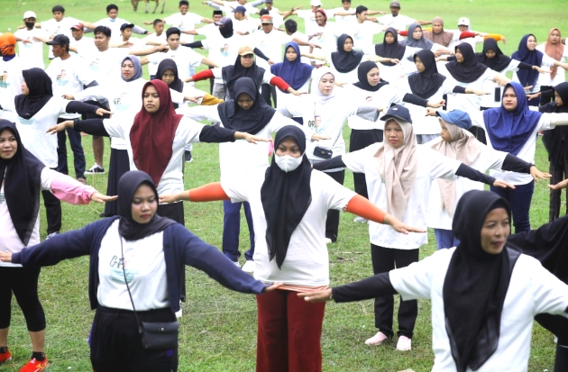 Adapun kegiatan jalan santai itu diikuti oleh anak muda, bapak-bapak hingga emak-emak. Mereka terlihat sangat antusias mengikuti kegiatan tersebut.