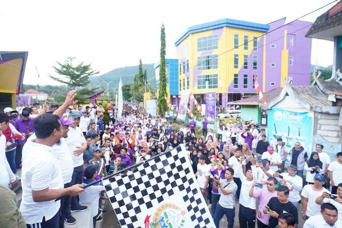 MANIFESTO, ENREKANG- Masyarakat Kabupaten Enrekang begitu antusias mengikuti kegiatan jalan sehat Sulsel Anti Mager di Anjungan Sungai Mata Allo, Enrekang, Sabtu 25 Februari 2023.