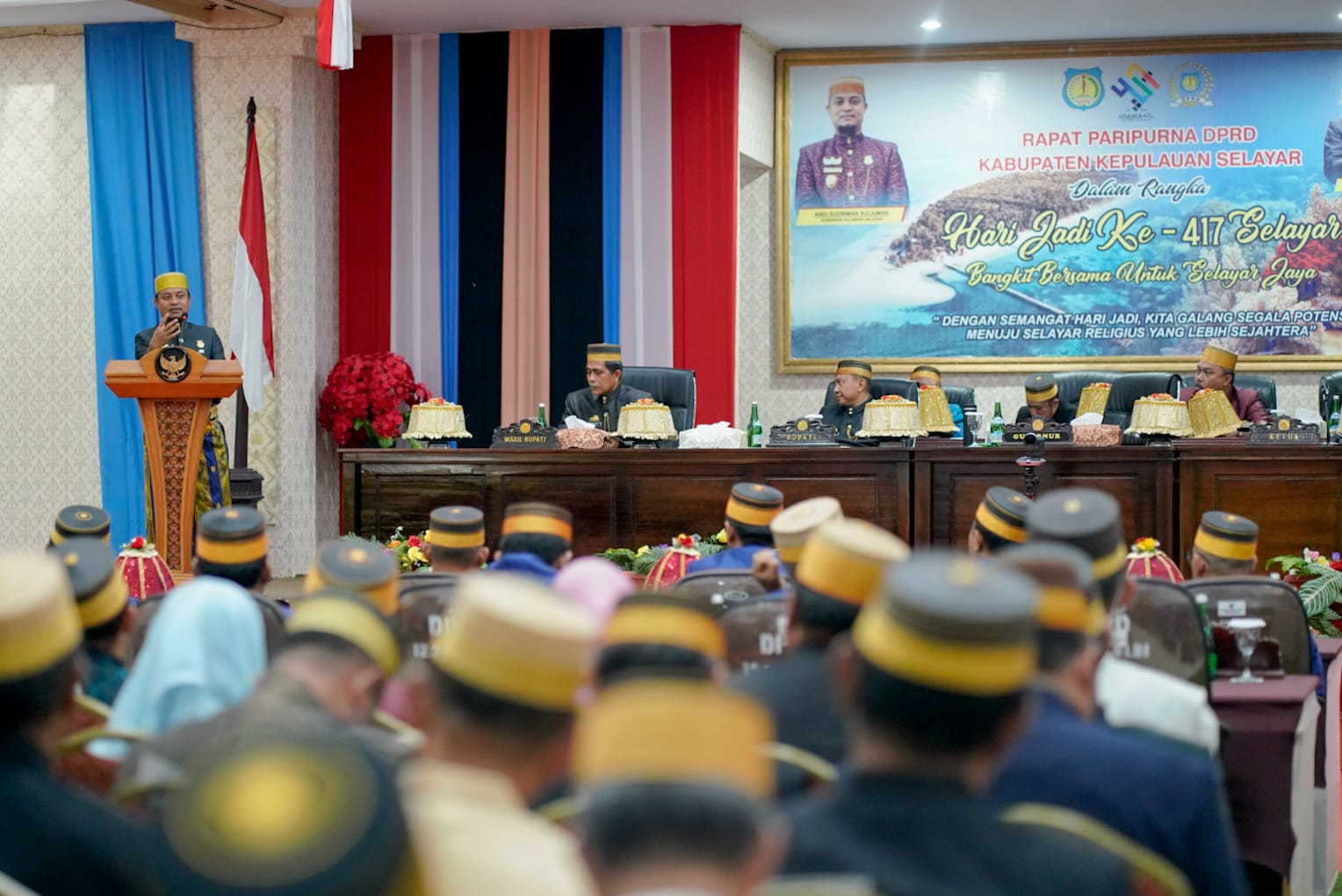 “417 tahun Kabupaten Kepulauan Selayar, kita berharap di bawah kepemimpinan Bupati, Bapak M. Basli Ali dan Wakil Bupati, Bapak Saiful Arif, bersinergi dengan forkopimda dan masyarakat untuk bangkit bersama, mewujudkan kabupaten Kepulauan Selayar Jaya,” terangnya.