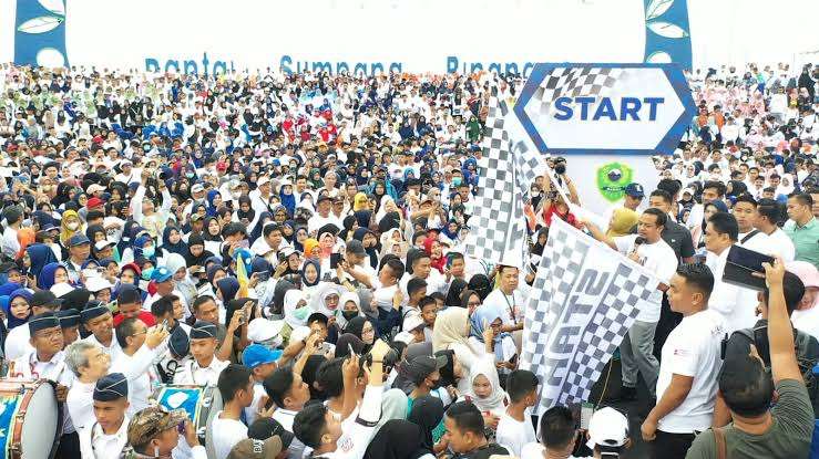 MANIFESTO, BARRU– Sekitar 60 ribu masyarakat Kabupaten Barru mengikuti jalan sehat Sulsel Anti Mager, Minggu (26/2/2023).