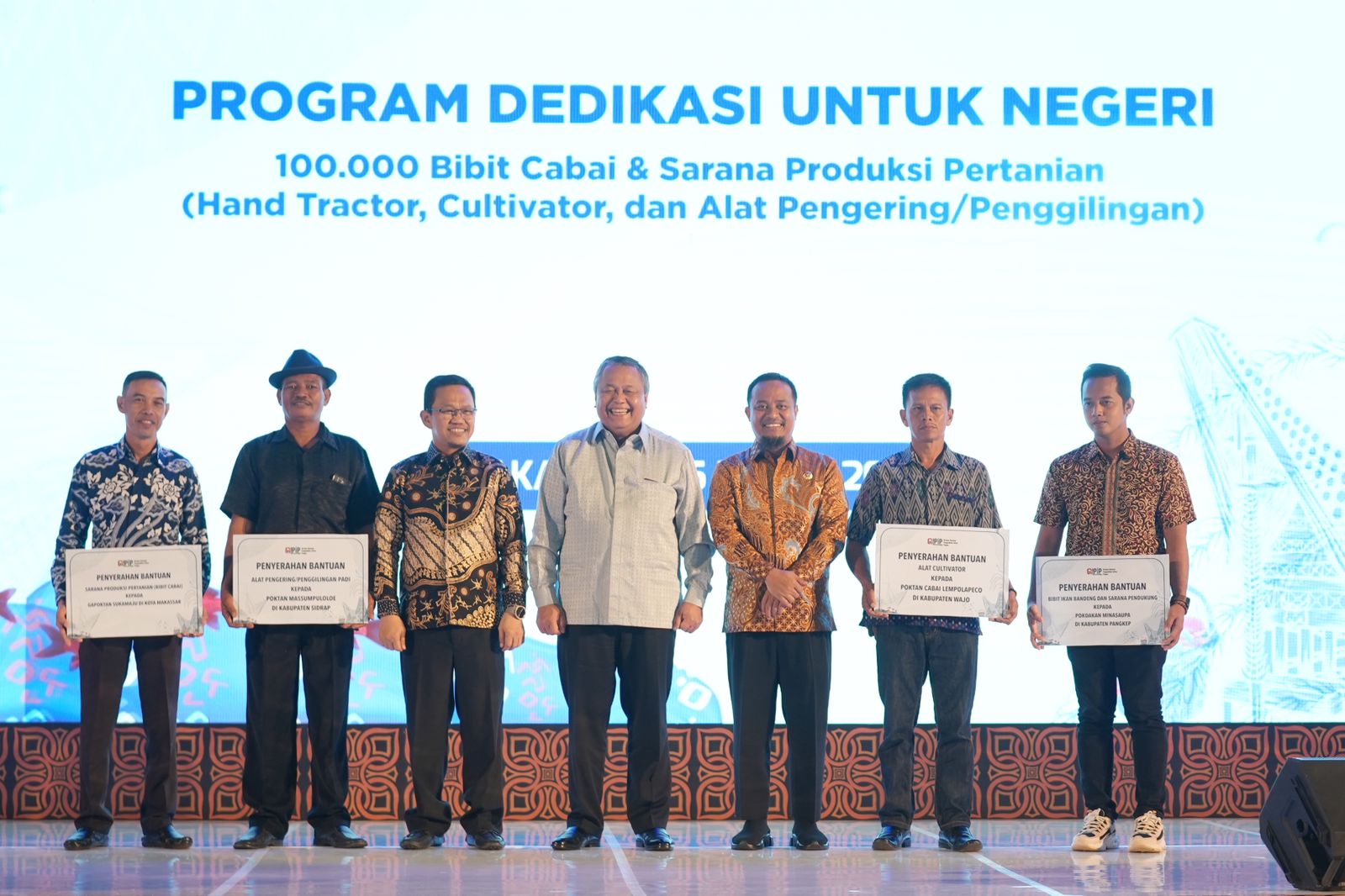 Dalam kesempatan itu, Andi Sudirman menyerahkan bantuan PSBI (Bibit, Sarana Produksi dan Pascapanen) untuk Kelompok Tani Lempolapeco dari Kabupaten Wajo dan Kelompok Budidaya Perikanan Minasa Upa dari Kabupaten Pangkep.