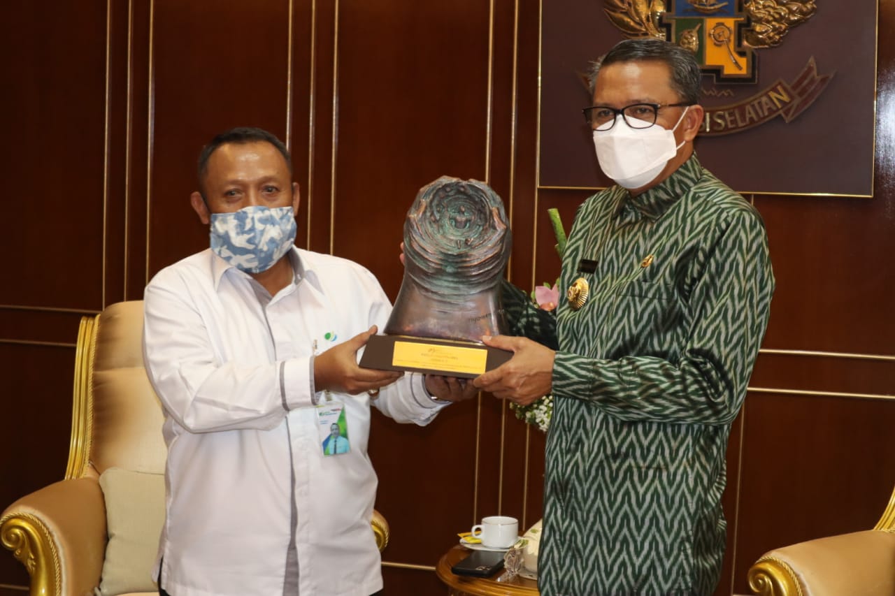 Penyerahan penghargaan dilakukan lansung oleh Direktur Utama BPJS Wilayah Sulsel, Maluku Toto Suharto Yang diterima lansung Gubernur Sulsel Diruang kerjanya (senin 28/9).