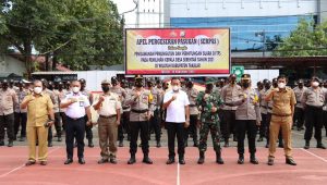 MANIFESTO, TAKALAR– Bupati Takalar Syamsari Kitta menghadiri pelaksanaan Apel Gelar Pasukan Pengamanan Pilkades Serentak 2021 di kantor Polres Takalar, Senin 15 November 2021.