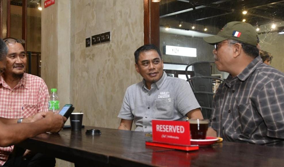 MANIFESTO, BONE- Politisi senior Sulsel, Dr Ilham Arief Sirajuddin (IAS) ngopi bareng dengan sejumlah tokoh masyarakat Bone, di Kafe Chill Coffe and Space, Watampone, Jumat malam, 12 Mei 2023.