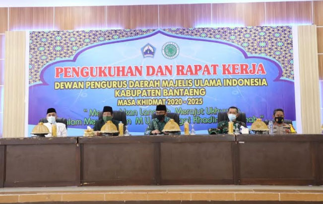 MANIFESTO, BANTAENG — Bupati Bantaeng, Ilham Azikin, mengajak pengurus Majelis Ulama Indonesia (MUI) Bantaeng terus membangun sinergi dengan pemerintah daerah. Hal tersebut disampaikan saat membuka rapat kerja MUI Bantaeng, belum lama ini.