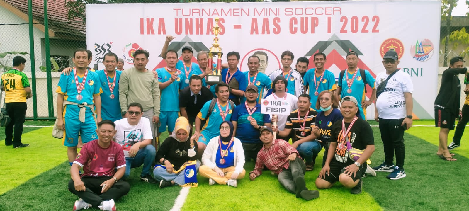MANIFESTO, MAKASSAR– Turnamen mini soccer IKA Unhas I, Andi Amran Sulaiman (AAS) Cup telah berakhir dengan menasbihkan tim IKA Fisip sebagai jawara di kategori 45 ke atas setelah mengalahkan tim perwakilan Rektorat Unhas dengan skor 2-1.