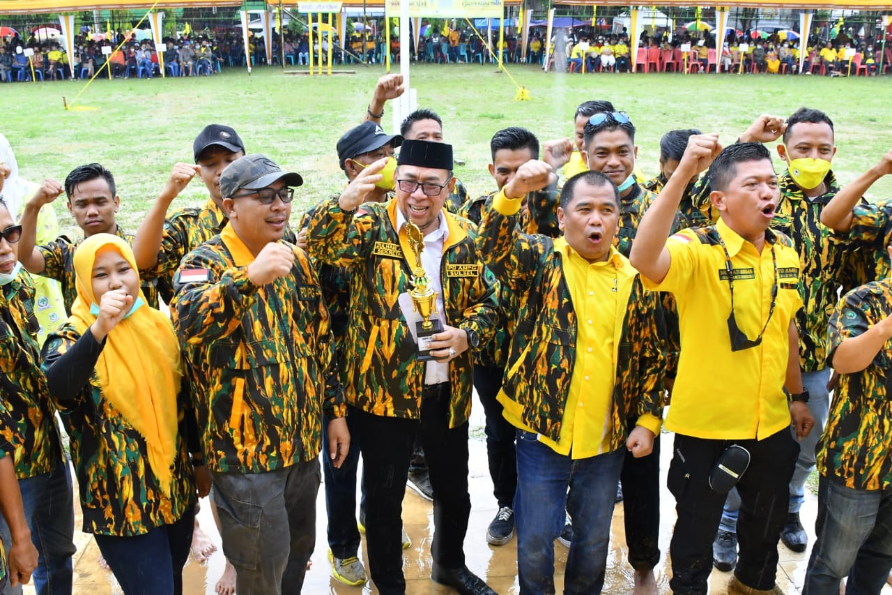MANIFESTO, RANTEPAO- Angkatan Muda Partai Golkar (AMPG) Bulukumba menyabet juara umum Kemah Bakti AMPG Sulsel di Lapangan Bakti, Rantepao, Toraja Utara, Sabtu 13 November 2021.