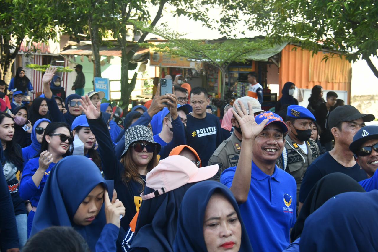 “NasDem Partaiku, Anies Baswedan Presidenku,”sahut peserta jalan sehat yang star di lapangan Gaspa hingga finish di Lapangan Pancasila.