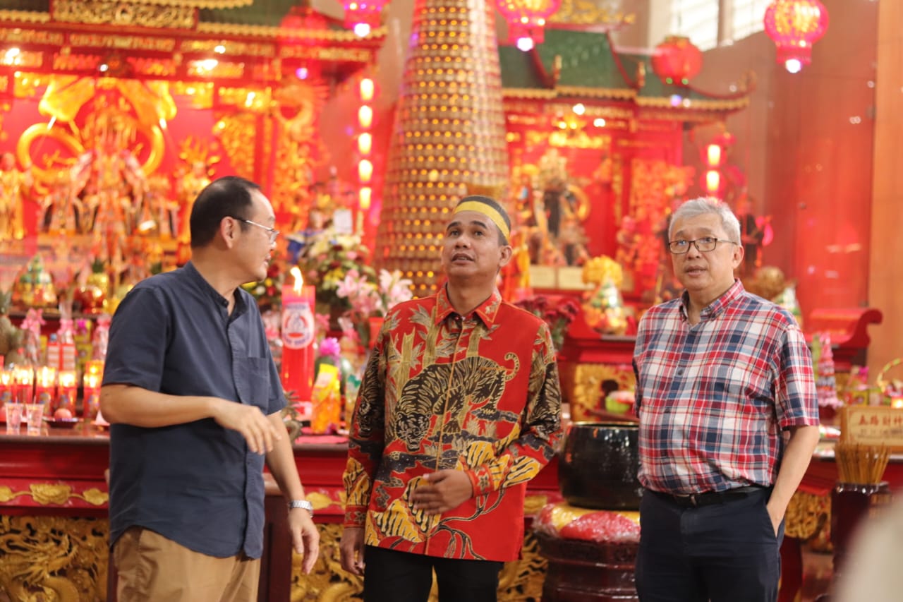 MANIFESTO, MAKASSAR— Pengurus Klenteng Xian Ma Makassar menyambut kedatangan Ketua DPRD Rudianto Lallo Makassar menjelang perayaan pesta rakyat Cap Go Meh yang dilaksanakan pada Minggu, 5 Februari mendatang.