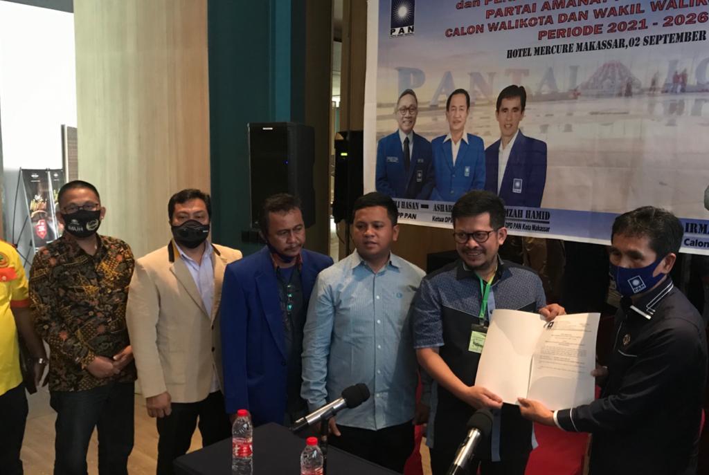 Ketua DPW PAN Sulsel Ashabul Kahfi diwakili oleh Hamzah Hamid memberikan rekomendasi berformat B1-KWK kepada pasangan dengan jargon Imun ini.