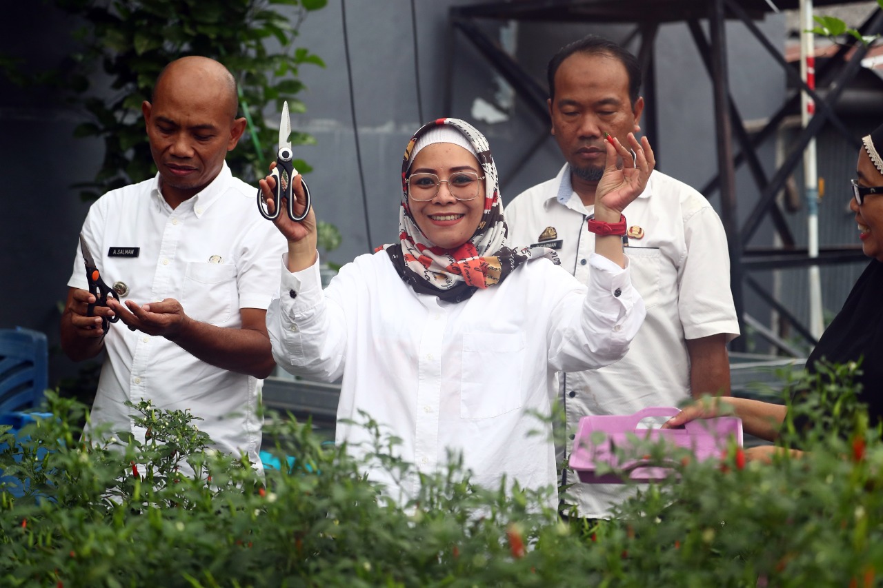 Pada kesempatannya, Nunung Dasniar meninjau langsung beberapa spot yang menjadi tempat budidaya sayur-sayuran, buah-buahan dan budidaya ikan.