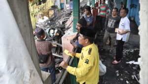 Ketua Angkatan Muda Partai Golkar (AMPG) Sulawesi Selatan Rahman Pina mengunjungi lokasi kebakaran di Jalan Pandang II Kelurahan Pandang Kecamatan Panakkukang, Sabtu 16 April 2022. (Dok).jpg