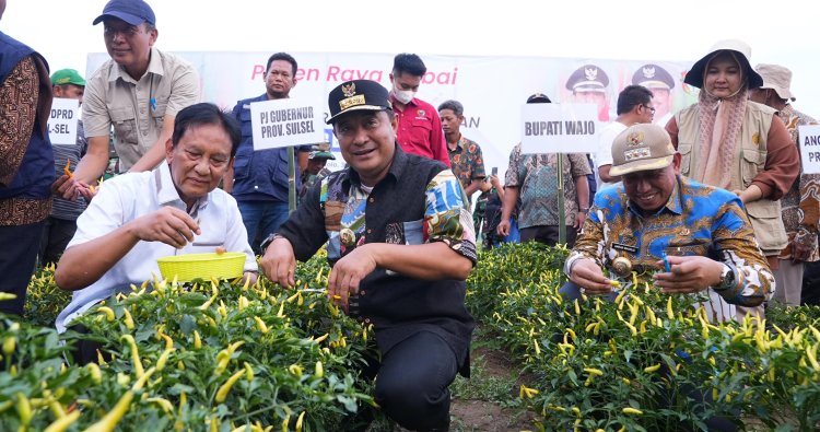 MANIFESTO, WAJO- Pemerintah Provinsi Provinsi Sulsel dan Pemerintah Kabupaten Wajo kompak panen raya cabe untuk menekan angka inflasi, khusus di Provinsi Sulsel. Panen dilakukan di sawah tadah hujan, di Desa Loa, Kecamatan Tana Sitolo, Kabupaten Wajo. Sabtu, 3 November 2023.