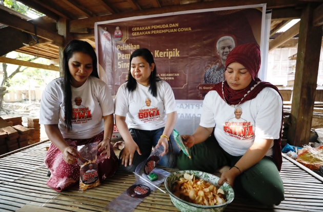 Pemuda dan Perempuan Ganjar Latih Ibu-Ibu Buat Keripik Singkong di Gowa