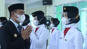 Bupati Takalar H. Syamsari, S.Pt, M.M mengukuhkan pasukan pengibar bendera dalam rangka HUT ke-76 RI, 17 Agustus 2021 besok.