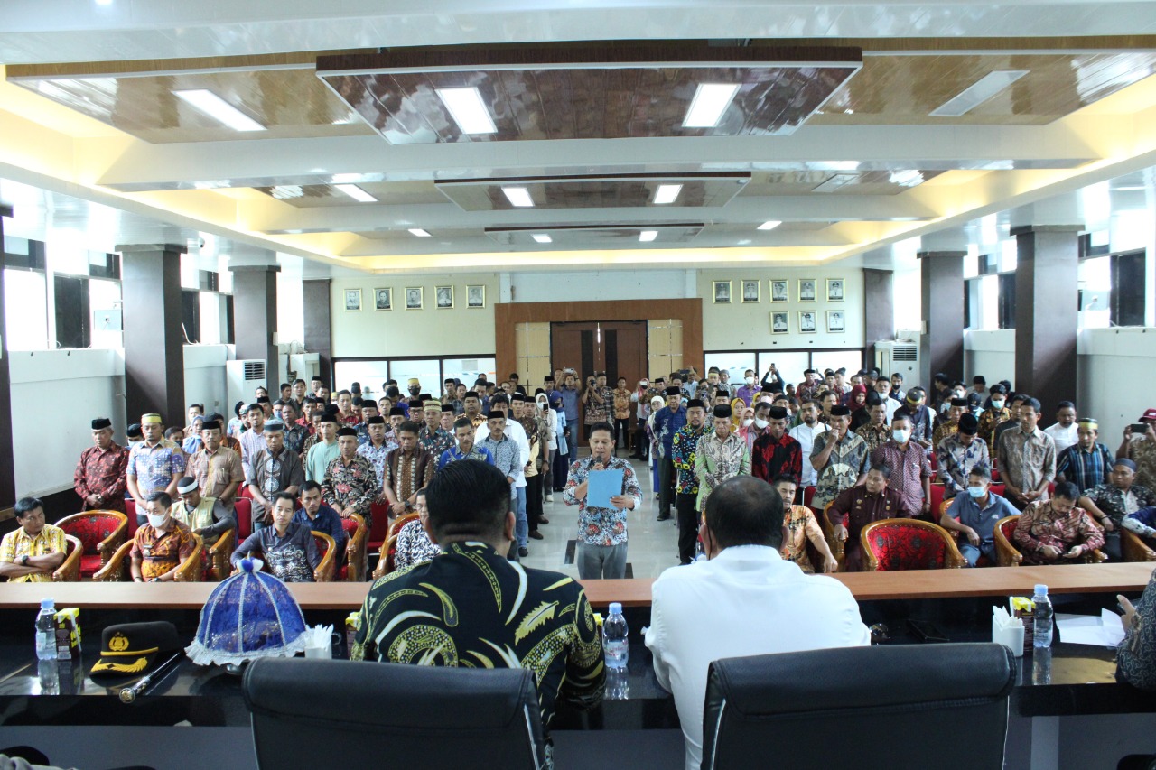 Agenda Penandatanganan Pakta Integritas Calon Kepala Desa yang di pimpin langsung Sekretaris Daerah Kab. Takalar Muhamad Hasbi digelar di Baruga I Mannindori Kantor Bupati Takalar, Kamis 24 November 2022.