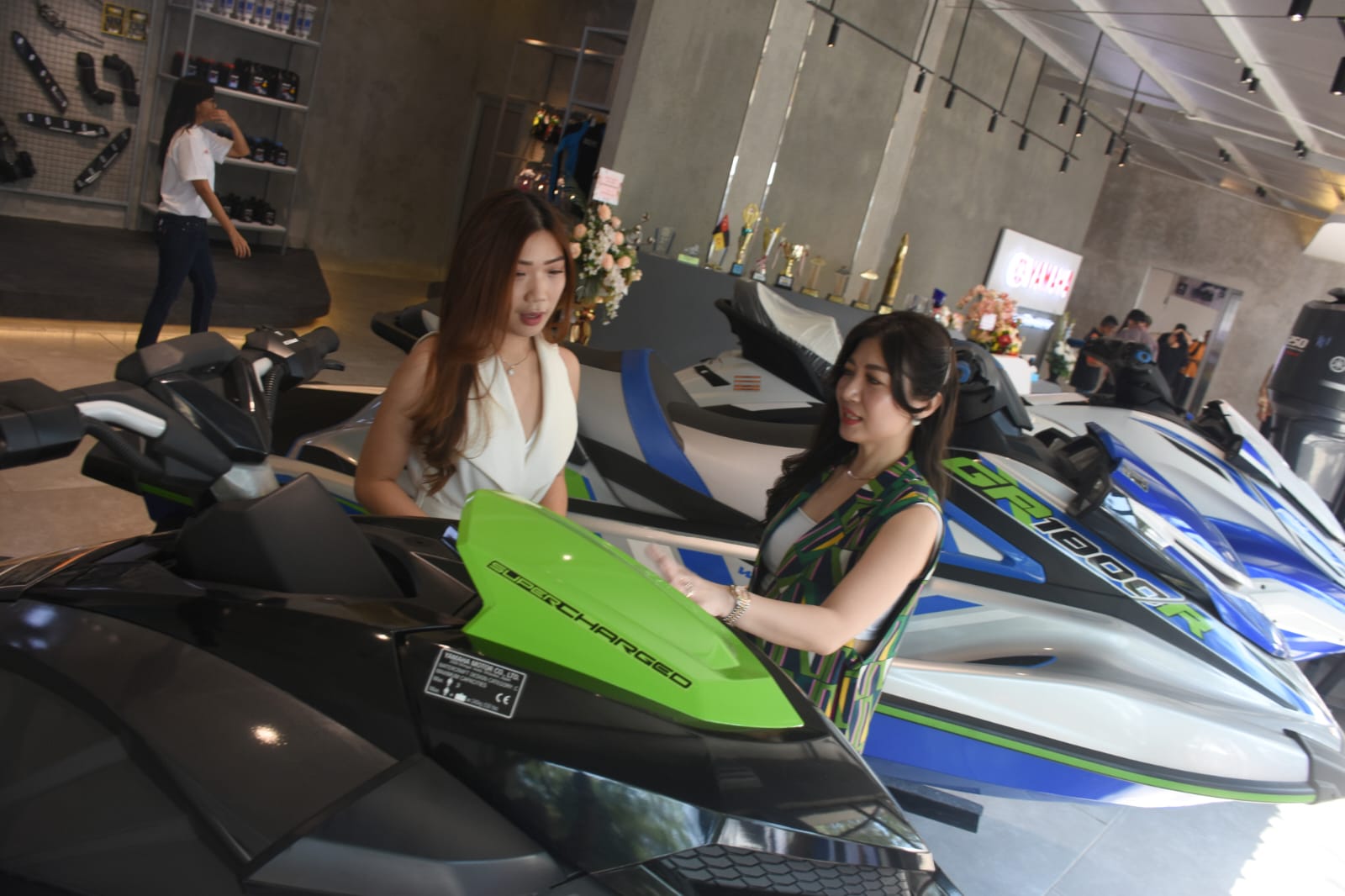 Showroom outboard ini menawarkan penjualan mulai jetski, mesin outboard, papan selancar, dan perlengkapan jestki. Di samping itu, pelanggan juga ditawarkan aftersales atau servis langsung.