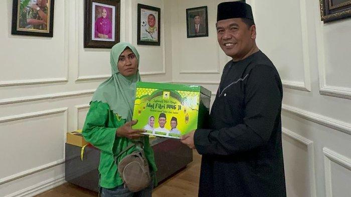 Wakil Ketua DPRD Sulsel Rahman Pina memberikan langsung paket lebaran dari Ketua Umum DPP Partai Golkar, Bahlil Lahadalia ke perempuan yang sempat viral beberapa hari lalu.