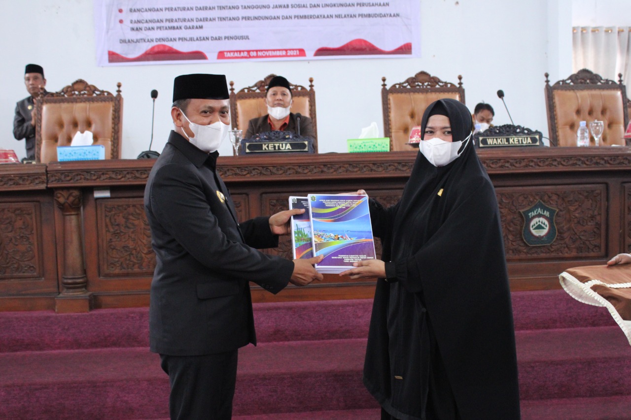 MANIFESTO, TAKALAR- Bupati Takalar Syamsari Kitta menyerahkan dokumen serta penjelasan terhadap Ranperda tentang perubahan Perda nomor 6 tahun 2012 tentang RTRW tahun 2012-2031 kepada DPRD Takalar dalam Rapat Paripurna DPRD Takalar, Senin (8/11/2021) siang.