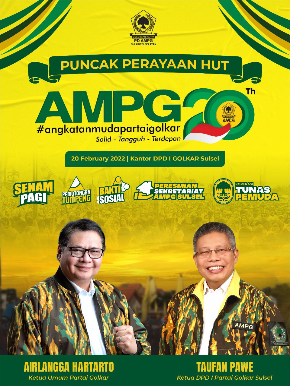MANIFESTO, MAKASSAR- Angkatan Muda Partai Golkar (AMPG) Sulawesi Selatan akan merayakan Hari Ulang Tahun (HUT) ke 20 pada Minggu 20 Februari 2022.
