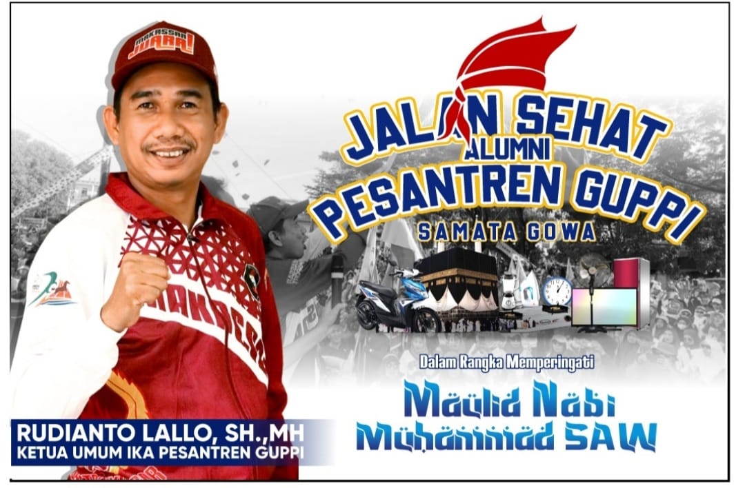 Sementara itu, Ketua Umum IKA Pesantren Guppi Samata Gowa, Rudianto Lallo mengajak masyarakat, khususnya seluruh alumni Pesantren Guppi untuk hadir dan memeriahkan jalan sehat tersebut. “Jadi jalan sehat ini tidak hanya untuk alumni saja, tapi juga terbuka untuk umum,” ujar Takdir.