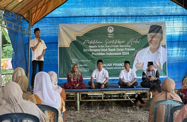 Teranyar, para pendukung Ganjar Pranowo itu mengadakan kegiatan pelatihan sertifikasi halal bagi jemaah Majelis Taklim Nurul Falah Samoling, Desa Parenring, Kecamatan Lilirilau, Kabupaten Soppeng. Sulsel, Jumat (2/6).