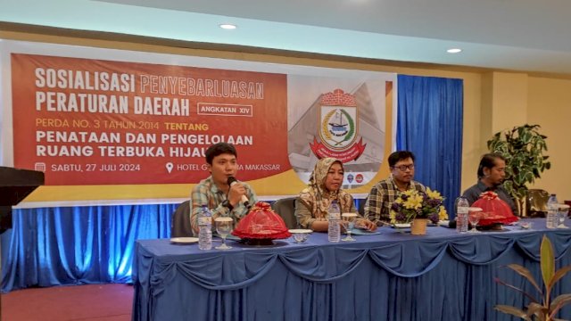 MANIFESTO, MAKASSAR – Sekretariat DPRD Kota Makassar menggelar kegiatan sosialisasi penyebarluasan Peraturan Daerah (Perda) Kota Makassar Nomor 3 tahun 2014 tentang penataan dan pengelolaan Ruang Terbuka Hijau (RTH). Kegiatan sosper Angkatan XIV tersebut dihelat di Hotel Grand Asia, Jalan Boulevard, Makassar, Sabtu (27/7/2024).