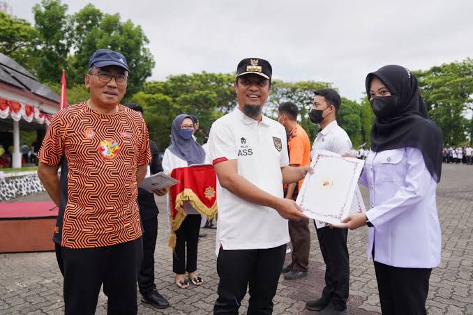 MANIFESTO, MAKASSAR – Gubernur Sulawesi Selatan Andi Sudirman Sulaiman menyerahkan Surat Keputusan (SK) Pegawai Negeri Sipil (PNS) dan Calon Pegawai Negeri Sipil (CPNS) Praja Institut Pemerintahan Dalam Negeri (IPDN) secara simbolis di Lapangan Upacara Kantor Gubernur Sulsel, Rabu, 26 Oktober 2022.