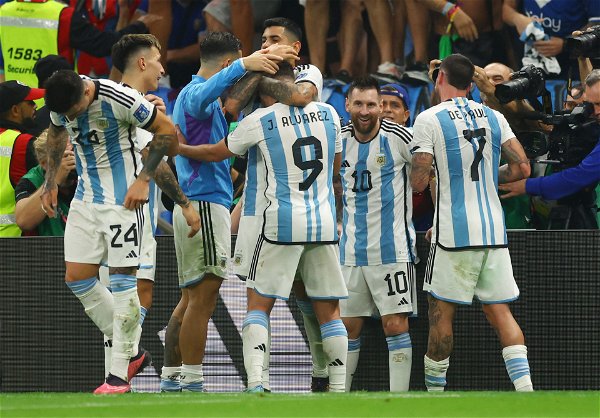 Argentina berhasil unggul 1-0 lebih dulu di menit ke-32. Alexis Mac Allister menanduk bola umpan sepak pojok dan diteruskan dengan sundulan Lisandro Martinez.