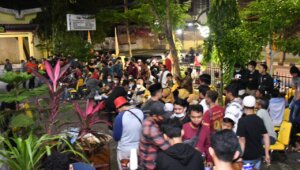 MANIFESTO, MAKASSAR– Tabuhan gendang dan teriakan ratusan kader- kader Angkatan Muda Partai Golkar (AMPG) mewarnai nonton bareng (nobar) PSM melawan Persija Jakarta di kantor DPD I Partai Golkar Sulsel, Minggu 18 April 2021.