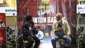 Nobar semakin ramai karena menghadirkan langsung mantan pemain dan pelatih PSM Syamsuddin Umar.