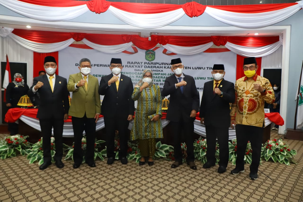 “Demi Allah saya bersumpah bahwa saya akan memenuhi kewajiban saya sebagai Ketua DPRD Lutim dengan sebaik-baiknya dan seadil-adilnya sesuai peraturan perundang-undangan dengan berpedoman Pancasila dan dan UUD 1945,” kata Aripin saat sumpah jabatan yang dipandu Ketua Pengadilan Malili.