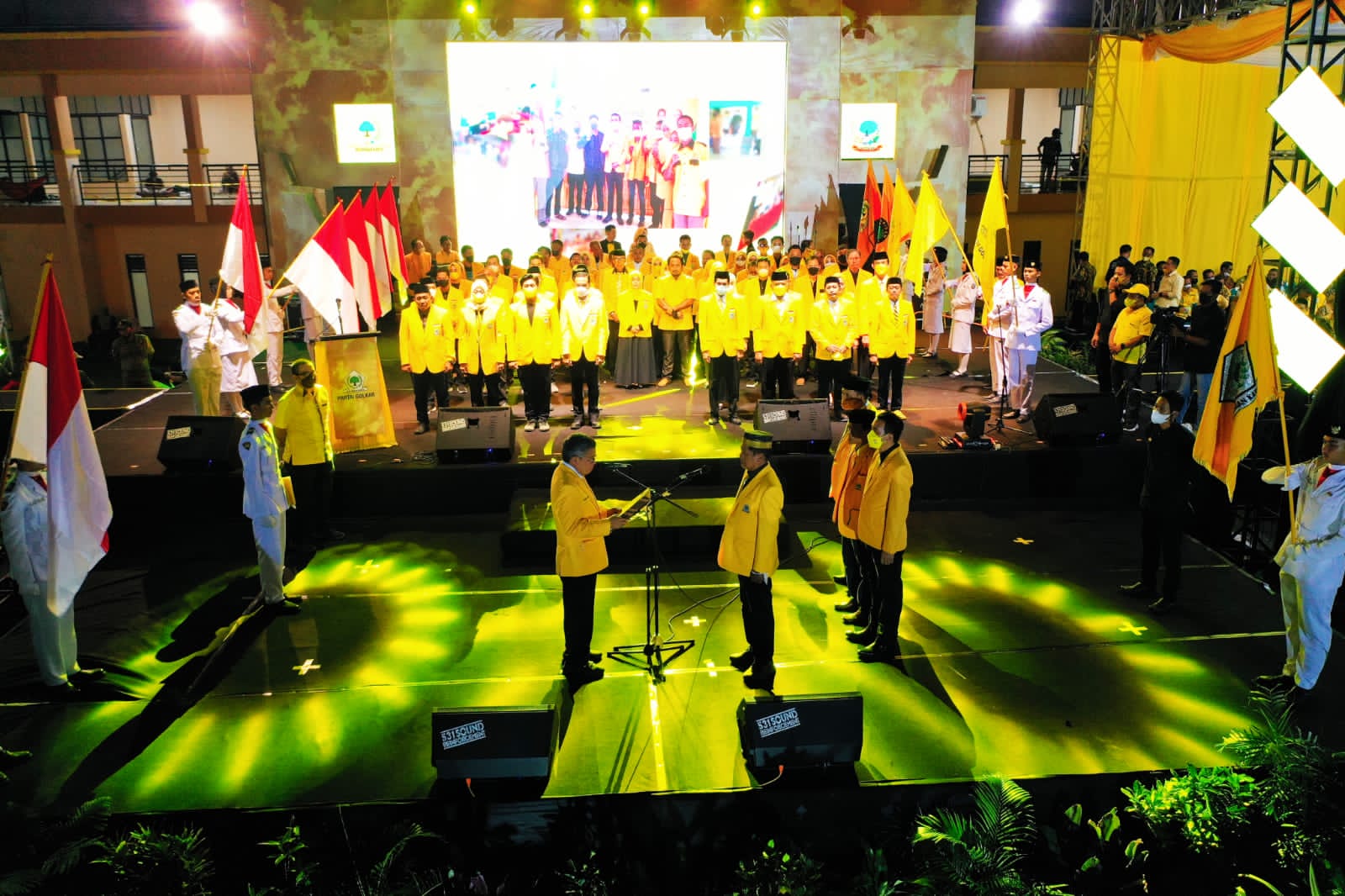 MANIFESTO, SOPPENG– Ketua DPD I Partai Golkar Sulsel Taufan Pawe melantik ketua DPD II Golkar Soppeng Andi Kaswadi Razak di lapangan Gasis Watangsoppeng, Sabtu 22 Januari 2022 malam.