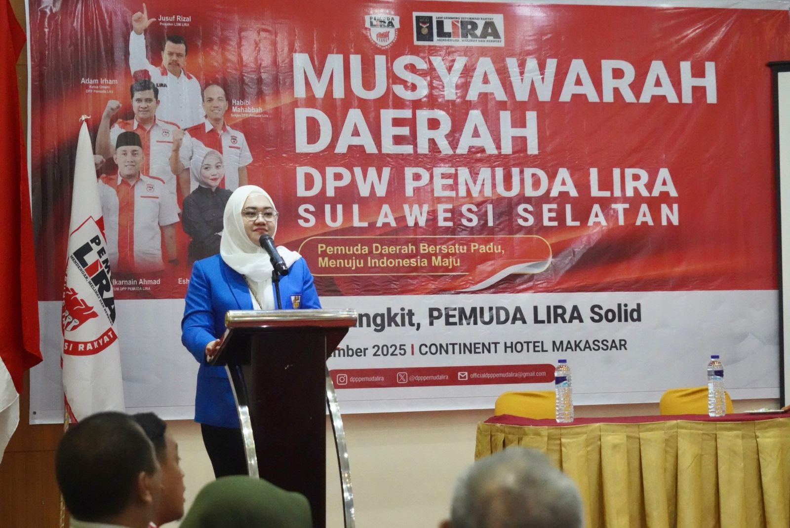 Meski masih terlihat masih kelelahan usai mengikuti musda KNPI yang berlangsung dua hari itu, Vonny tetap menghadiri pengukuhan Ketua DPW Pemuda LIRA Sulsel Eshin Usami Nur Rahman di Hotel Continent, Rabu 10 Desember 2025.